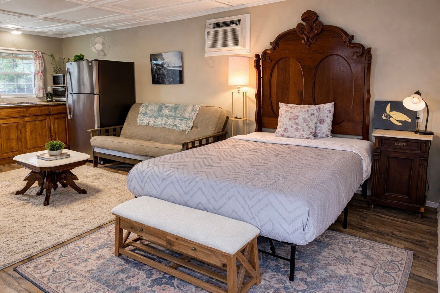 Enjoy a cozy open living area, an equipped kitchenette, and comfortable sleeping arrangements to ensure a great night’s rest. High-speed Wi-Fi, fresh linens, and essential amenities are provided to make your stay stress-free.